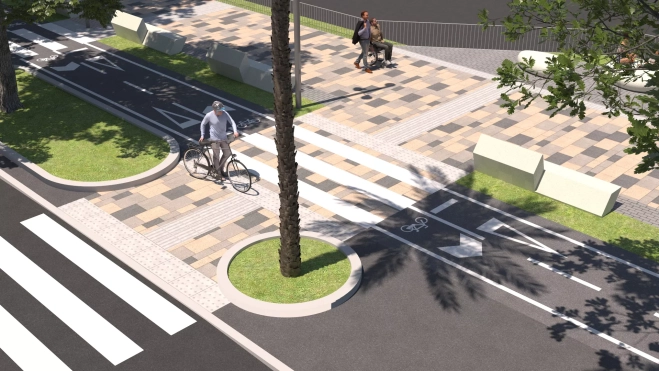 El ancho del carril bici VMP (vehículos de movilidad personal) tendrá un total de tres metros, y la franja peatonal se mantendrá en el lateral hacia al mar, con un ancho similar al carril bici. Además, se crearán zonas de descanso con aspecto de miradores, acondicionadas con sombra y mobiliario urbano adecuado.