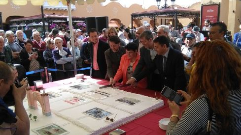 No se bajó el telón, como final del acto, de esta gran obra, de este gran Cumpleaños, sino que se usó para dar fin a la fiesta una gigantesca tarta realizada por “La Tartería”. Igualmente, el final sonoro lo pusieron el grupo “La Vendimia”, con sones tradicionales de las Islas y ataviados con trajes de época.
