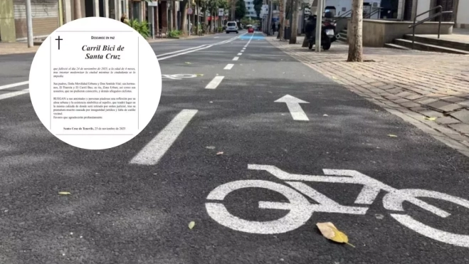 El carril bici fue una ilusión del Ayuntamiento de Santa Cruz que no llegó a ver la luz. En clave de humor, una necrológica publicada este miércoles en el periódico Diario de Avisos, le dice adiós al proyecto, "fallecido" tras una "prematura muerte" causada "por inseguridad jurídica y falta de cariño vecinal".