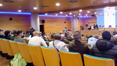 En la sala, además de feriantes y empresarios, hay otros actores atentos a cada golpe de mazo: los comerciales.