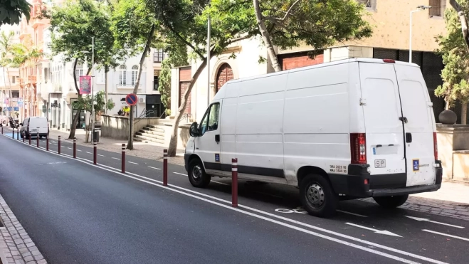 Ocho y media de la mañana en Santa Cruz de Tenerife. La zona centro es un hervidero. En las calles Méndez Núñez y El Pilar, el carril bici se colapsa de furgonetas de reparto descargando mercancía.
