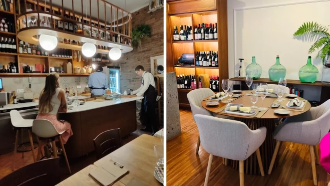 El local apuesta por un concepto extremadamente reducido en capacidad: una barra destinada a seis comensales y una mesa con espacio para un máximo de cinco personas. Esta dimensión limitada refuerza la idea de una experiencia gastronómica íntima y muy personalizada.
