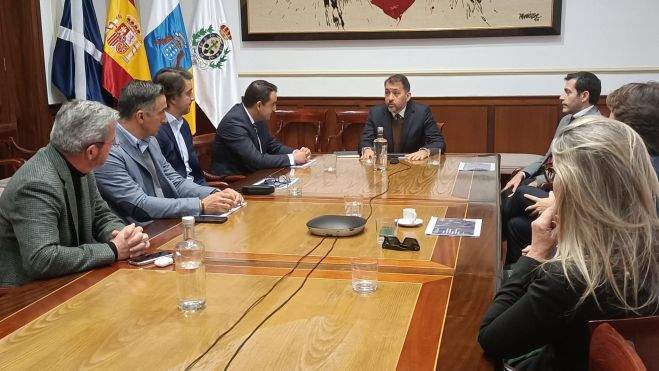 El alcalde de Santa Cruz, José Manuel Bermúdez, acompañado por el concejal de Proyectos Estratégicos, Juan José Martínez, ha mantenido la mañana de este martes una reunión con miembros de la Cámara de Comercio y el Círculo de Empresarios de Lanzarote, que lideran el Clúster de Cero Emisiones en el Foro Económico Mundial contra el Cambio Climático, “que valoramos y consideramos como una gran oportunidad para la ciudad el que quiera contar con nosotros para poder participar en una iniciativa tan importante, no solo para Santa Cruz de Tenerife, sino para el resto de Canarias”, explicó el primer edil.