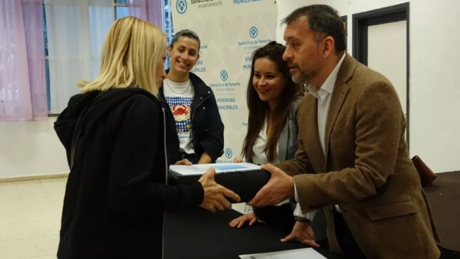 El alcalde de Santa Cruz de Tenerife, José Manuel Bermúdez, a través de Viviendas Municipales, gestionada por la concejala Belén Mesa, procedió esta semana a la entrega de los proyectos a los presidentes de las comunidades de propietarios de los 10 edificios incluidos en la ERRP Gladiolos IV, “cuyas 292 viviendas serán remodeladas gracias a los fondos europeos Next Generation, correspondientes a los tres lotes de actuaciones, con una inversión prevista de 7.706.445,50 euros