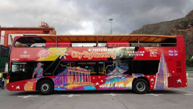 El Ayuntamiento de Santa Cruz de Tenerife, a través de la Sociedad de Desarrollo, ha puesto en marcha este martes el nuevo servicio de guaguas turísticas panorámicas, adjudicado a la empresa City Sightseeing por ocho años, con posibilidad de dos más de prórroga. El recorrido incluye 13 paradas en puntos emblemáticos como el Auditorio de Tenerife, el Mercado Nuestra Señora de África, el TEA o la Casa del Carnaval.