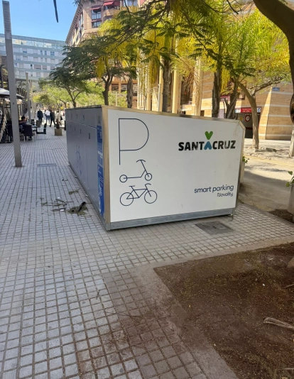 Desde hace unas semanas Santa Cruz de Tenerife ha comenzado a colocar en las principales vías de la capital unas instalaciones para que quienes tengan patinetes o bicicletas puedan guardarlas estilo taquilla, todo ello dentro del proyecto de la Red de Movilidad Personal (RMP).