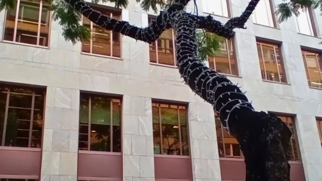 Cableado con luces de Navidad, bridas en las ramas, cortes mal hechos en la corteza, tornillos y clavos enterrados en el tronco son algunas de las agresiones a las que han sido sometidos estos ejemplares y a los que ha hecho referencia