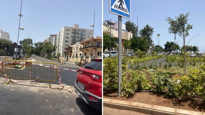 Estos trabajos se iniciaron en el contexto de la tala de seis laureles de indias, para plantar otros nueve, y se completaron con la recuperación de las zonas ajardinadas del entorno con ese nuevo tránsito peatonal que permitirá a los ciudadanos poder continuar hasta la altura de la Comandancia Marina, cuando antes debían desviarse en el tramo anterior de la rambla, justo al llegar al Monumento a Franco o antes de llegar a la intersección de entrada a Residencial Anaga.