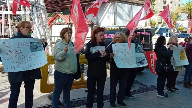 El personal de limpieza de la empresa Eulen, que realiza su trabajo en El Corte Inglés, en Tenerife, se ha concentrado en los aledaños del centro comercial para denunciar que, desde hace años, es quien tiene que encargarse de limpiar los excrementos de los perros que acceden con sus dueños.