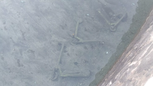 La asociación Canarias Siempre a la Vista ha denunciado durante los últimos días en sus redes sociales la contaminación que rodea al castillo de San Juan Bautista, conocido como el Castillo Negro, en Santa Cruz de Tenerife, adjuntando unas imágenes en las que se pueden ver tres patinetes de Link en el fondo del mar.