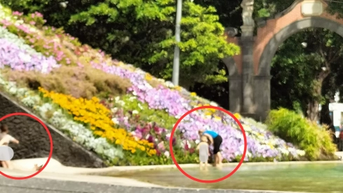 Sin ropa y en un agua sin tratamiento no apta para el baño. Así es como han metido varios turistas a sus hijos este miércoles en el charco artificial de la plaza de España de Santa Cruz para que se dieran un chapuzón, a plena luz del día, tal y como se aprecia en unas imágenes enviadas a Atlántico Hoy.