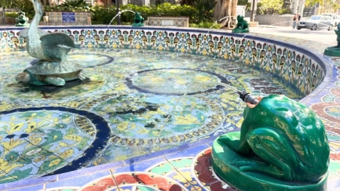 Una de las plazas más populares de Santa Cruz de Tenerife, la centenaria plaza de Los Patos, fue vandalizada el pasado sábado, después de que a una de las ocho ranas que rodean la oca central en la fuente le hayan reventado la cabeza.