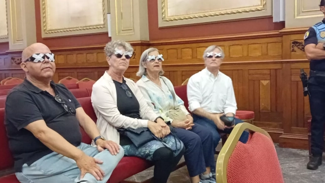 Una vez más, un grupo de vecinos de Santa Cruz, concretamente de la zona de El Toscal y de la Asociación Toscal Tribulaciones, se han presentado en el Pleno municipal con gafas de sol con tachaduras, a modo de protesta.