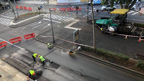 Este lunes comenzó la actuación de reasfaltado en la Rambla de Santa Cruz. Concretamente, en el tramo que va desde la calle San Martín hasta el final de la Rambla, en los carriles en sentido descendente.