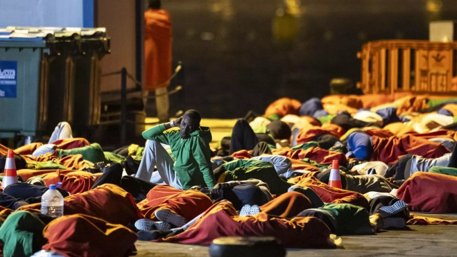 Según EFE, esta madrugada estas personas han dormidoen el suelo tapadas con mantas aportadas por los servicios que prestan atención a los migrantes cuando llegan a los puertos canarios.