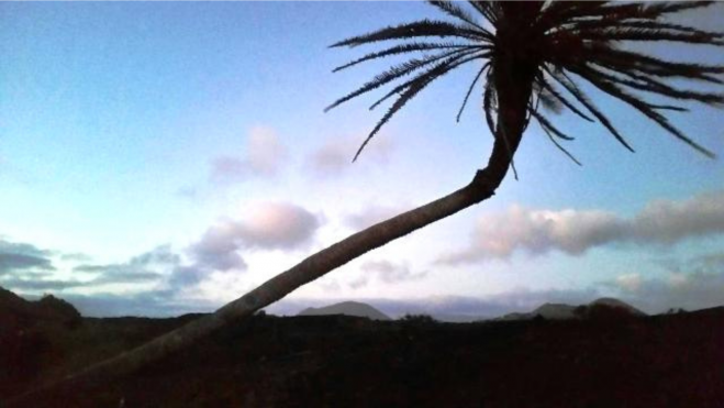 El viento es la principal causa de que muchas palmeras de Lanzarote presenten esa forma tan característica. Se presentan inclinadas hacia un lado por el viento que las azora durante años. Actualmente existe una investigación para esclarecer los hechos aunque ya se sabe que la palmera fue talada desde la base y posteriormente el propio peso hizo que terminara cediendo hasta el suelo, según el propio alcalde de Tías, José Juan Cruz Saavedra.