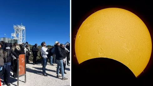 Astrónomos y aficionados se han citado este sábado en el Observatorio del Teide, en Tenerife, para observar el eclipse parcial de Sol que, aunque sutil a simple vista, supone una oportunidad para acercarse a la Astronomía y al conocimiento del Universo.
