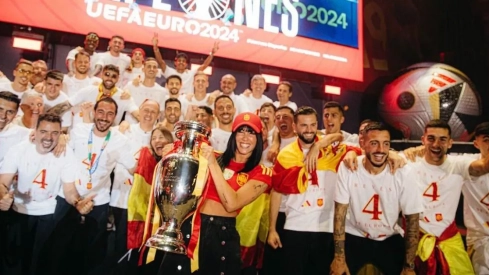 A solo cuatro noches para la velada, y a apenas horas de recalar en la isla, la artista catalana protagonizó una parte de la celebración de la Selección Española por ganar la Eurocopa, cantando sobre el escenario y rodeada de los campeones uno de sus tantos temas conocidos Mon amour’.