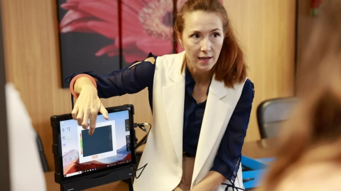 Teniendo en cuenta que el aprendizaje es en gran parte un proceso visual, la tecnología de seguimiento ocular permite reunir una importante cantidad de información sobre la mente humana. Alumnos con diversos tipos de discapacidad motora podrán hacer uso de este nuevo dispositivo interactivo que cuenta con un rastreador para hacer mediciones oculares y que registra la posición de los ojos y su movimiento para darles voz, de tal manera que puedan hablar y relacionarse utilizando la mirada.
