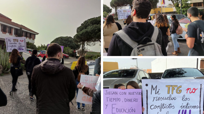 La protesta, que comenzó en el Rectorado a las 10 de la mañana, se traslado posteriormente a la Facultad de Educación. Durante la manifestación de los estudiantes se pudieron ver pancartas que contenían mensajes como ''Mi TFG no resuelve los conflictos internos de la ULL'', ''Queremos estar orgullosos de nuestra Universidad'', o ''La calidad de nuestra formación condiciona la educación del futuro'', lo que muestra el molestar de los alumnos con la institución universitaria. En medio de la manifestación, algunos estudiantes fueron llamados por la rectora, Rosa Aguilar, para dialogar.