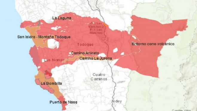 Los barrios afectados son Camino Paraíso, Camino Marta, Camino La Aldea, Camino Aniceto, Camino la Majada, la zona agrícola de La Bombilla, San Isidro, en el acceso a las viviendas situadas en el oeste y norte de la montaña de Todoque, y La Laguna, que se permitirá el acceso bajo la supervisión de la dirección de obra.