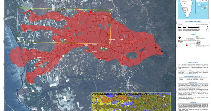 La velocidad del avance de la lava se ha ralentizado por lo que no se prevé que hayan evacuaciones este domingo, a no ser que cambie las condiciones del volcán. Por el momento, y según el catastro, las coladas de lava han afectado a 1.058 edificaciones y ocupan ya 742 hectáreas, con una anchura máxima de 2,35 kilómetros, según ha informado este domingo el Departamento de Seguridad Nacional.