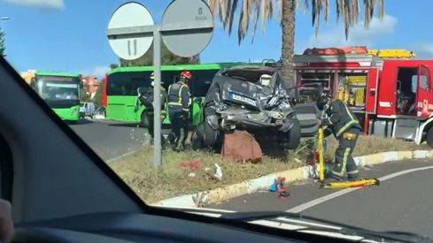 Un accidente de tráfico en la rotonda de acceso al Centro Comercial La Villa, en La Orotava, ha provocado retenciones por momentos en la zona. Dos de los afectados tuvieron que ser atendidos y rescatados por los bomberos como muestra el vídeo que acompaña esta información.