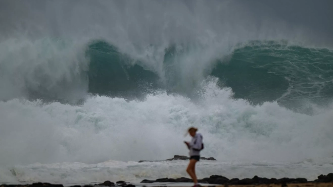 Grandes olas en el pueblo de la Santa, en el municipio de Tinajo. / ADRIEL PERDOMO-EFE