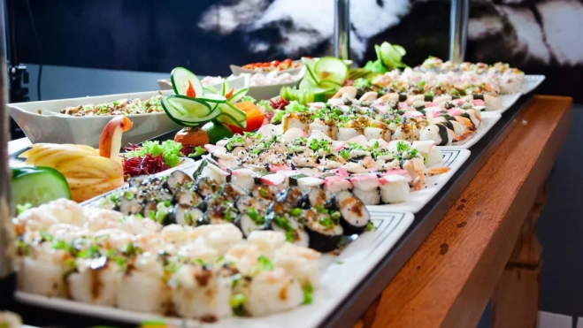 Desde sushi fresco y sashimi hasta tempuras crujientes, pasando por una amplia variedad de carnes a la plancha, mariscos, arroces y fideos, la carta de este buffet está diseñada para satisfacer todos los gustos.