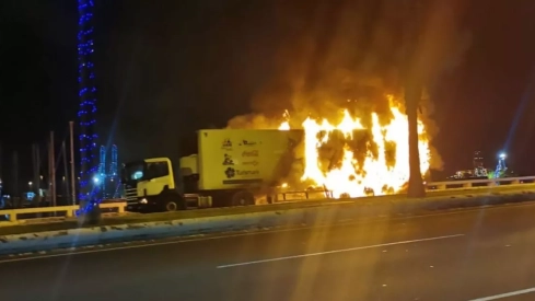Bomberos de Las Palmas de Gran Canaria tuvieron que actuar de urgencia en la noche de este domingo, pasadas las 21.30, para sofocar las llamas de un camión de importantes dimensiones en la Avenida Marítima de la capital de la isla, a la altura del muelle deportivo