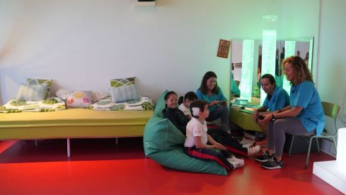 Además, la luz ultravioleta y los tubos de burbujas ayudan a focalizar la atención, la propiocepción y los seguimientos visuales, mientras que los proyectores ayudan a crear ambientes envolventes en los que se entremezclan los sentidos y se favorece la relajación.