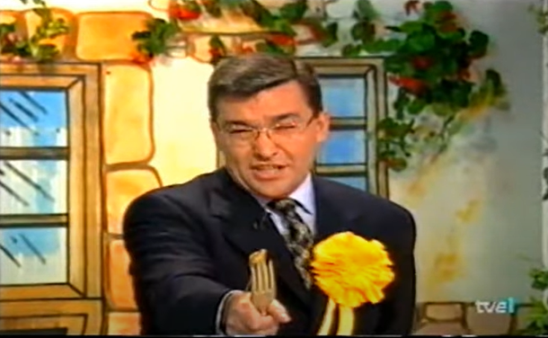 Como todos los nostálgicos del programa recuerdan, una de las pruebas estrellas era la de la ‘patata’ caliente, un globo que iba creciendo hasta explotar mientras que los concursantes trataban de acertar la cifra exacta que buscaba la pregunta ejercida por Ramón García. En el caso de Rivero, no acertó a responder “cuántos gramos pesaba el champiñón más gran de España” y la ‘papa caliente’ le acabó estallando.