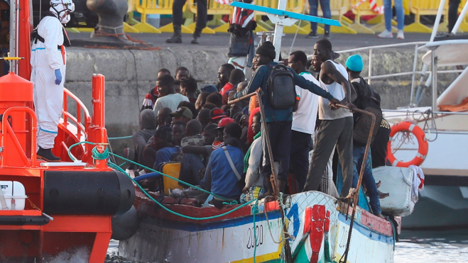 Canarias ha recibido durante los diez primeros meses del año 11.409 inmigrantes en 411 pateras, 5.328 de ellos solo en octubre, en los 31 días más intensos de llegadas que se recuerdan en las islas desde la crisis de los cayucos de 2006-2007, según datos del Ministerio del Interior.El flujo de inmigrantes por mar desde África a Canarias se ha multiplicado por siete en comparación con la misma fecha de 2019 (+664 %) y está a punto de convertir a 2020 en el segundo año más importante en llegada de pateras a las islas de la historia, posición que ahora ocupa 2007 con 12.478 personas.Estos datos corroboran, de nuevo, el auge que experimenta desde hace meses la Ruta Canaria en comparación con la del Estrecho de Gibraltar y el Mediterráneo: en los diez primeros meses del año han entrado por esta última vía a la península y Baleares 14.252 personas, 5.481 menos que en 2019, con una disminución del 27,8 %.De hecho, las entradas por Canarias tienen desde hace tiempo tal fuerza, que el balance total de personas llegadas a España en patera está ya en cifras anuales positivas debido a ellas.Desde el 1 de enero hasta el 31 de octubre, las estadísticas del Ministerio del Interior registran 26.044 inmigrantes que han accedido a España por vía marítima, un 17 % más. De todos ellos, uno de cada cuatro, el 44 %, ha desembarcado en Canarias.
