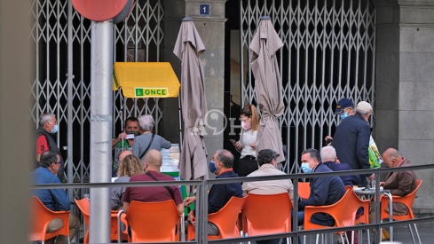 Clientes en una terraza frente al cine Víctor de Santa Cruz (Canarias)./ jacfotografo