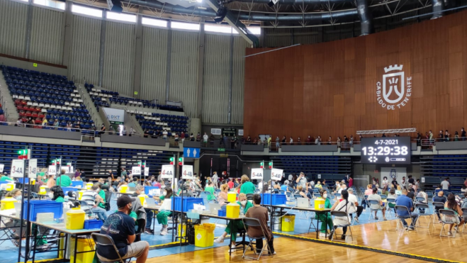 Casi 8.000 personas de entre 40 y 59 años se han vacunado contra el coronavirus en la jornada especial para acudir sin cita a recibir el pinchazo convocada este domingo en Gran Canaria y Tenerife. Esta jornada iba dirigida a gente de ese grupo de edad que aún no se hubiera puesto la primera dosis, según informó este lunes la Consejería de Sanidad.Una vez computadas las del domingo, en Canarias ya se han inyectado 2.080.798 dosis del fármaco contra la covid-19 desde que se iniciara la campaña de vacunación de la población. Hay 919.355 personas que ya han recibido todo el tratamiento completo, que suponen el 46,89% de la población diana mayor de 12 años de Canarias.