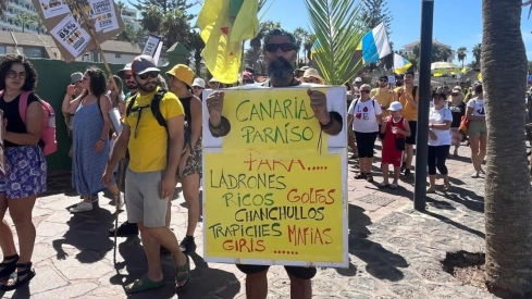 Así, critica sobre la gestión de Canarias que “están los caciques con más de 40 años y siempre con el mismo modelo y cada vez con una vida más precaria, bañándonos en mierda. Y no solamente eso, sino también en" las aguas para llenar las piscinas. Y todas las desaladoras que va a haber ahora va a ser para bañarnos en más mierda”.
