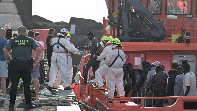 Este lunes por la tarde Salvamento Marítimo rescató a otro grupo de migrantes conformado por 66 varones de origen subsahariano, algunos de ellos menores, en aparente buen estado de salud, que navegaban a 83 kilómetros al sureste de El Hierro y los trasladó hasta el mismo muelle de La Restinga, según han informado a EFE fuentes de los equipos de salvamento y emergencias.