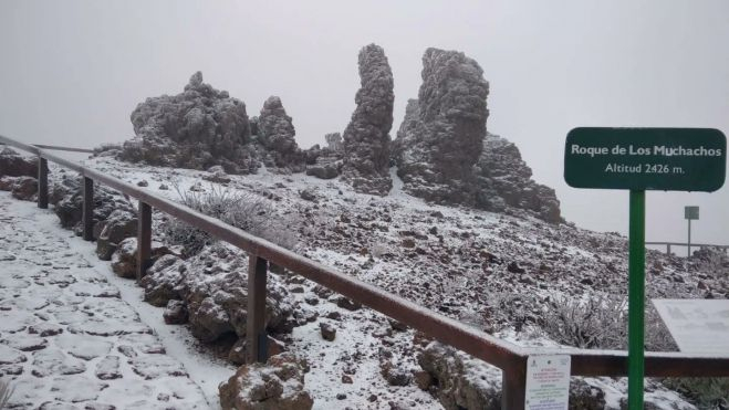El Cabildo de La Palma ha anunciado que ha cerrado la carretera del Roque de Los Muchachos entre el Pico de La Nieves y Residencia del Roque por placas de hielo en la calzada.