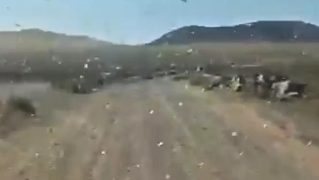 Un vídeo difundido por el Consorcio Insular de Emergencias muestra cómo las langostas ocupan parte de la vía, obligando a extremar la precaución a los conductores.