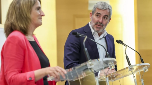 El presidente de Canarias, Fernando Clavijo, ha señalado en la rueda de prensa posterior a su reunión con la vicepresidenta tercera y ministra para la Transición Ecológica y el Reto Demográfico en funciones, Teresa Ribera, que transmitirá al Gobierno central la disposición de Canarias para que algún estadio de las Islas sea sede del Mundial 2030.