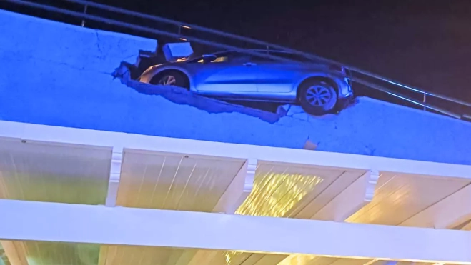 Un coche derriba un muro tras sufrir un accidente en la zona del Beril, ubicada en La Caleta, en el municipio tinerfeño de Adeje. El incidente ocurrió este pasado martes.