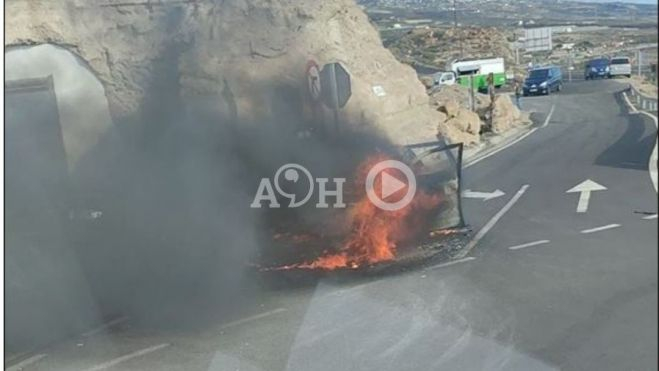 Este miércoles por la mañana ha quedado un coche en llamas en la salida 35 de la TF-1, la autopista del sur de Tenerife, dirección Sur, por causas que aún se desconocen.Numerosos usuarios de la vía y alrededores se sorprendieron ante este inesperado suceso en el que un testigo escuchaba "como petardazos" mientras el vehículo, con las puertas abiertas, ardía, por lo que nadie se podía acercar.La Guardia Civil se encargó de controlar situación y se investigan las causas.