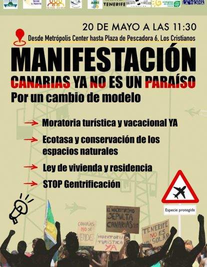 De esta forma, consideran que “dado el histórico de manifestaciones realizadas en la zona metropolitana de la isla en días no laborables, es necesario hacerla en el origen de muchos de nuestros problemas: los espacios hiperturistificados del sur de Tenerife”.