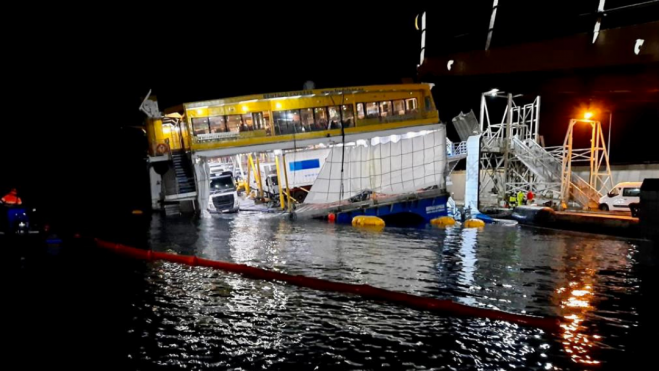 Los equipos contratados por Fred Olsen Express para rescatar el barco han trabajado en las últimas horas en devolver la flotabilidad a su patín izquierdo y han logrado liberar al ferry aprovechando la última pleamar, que tuvo lugar en torno a la medianoche. Con el catamarán amarrado al muelle desde donde habitualmente opera, la naviera va a proceder a hacer una inspección submarina del casco, para observar los daños que ha sufrido. "Está previsto que la valoración del casco, centrada en el patín de babor, se prolongue durante las próximas jornadas. El buque permanecerá en la posición actual hasta el fin del peritaje", detalla la naviera. El barco transporta en su bodega los coches y camiones que habían embarcado en su interior el pasado jueves en Santa Cruz de Tenerife.