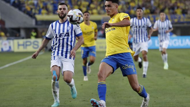 Con Fabio fuera de circulación tras el descanso —lesionado tras un pisotón criminal—, García Pimienta fijó a Mfulu por delante de la defensa, una línea que a esas alturas ya andaba con jaqueca de tanto pelear con Villalibre —un incordio peor que un dolor de muelas—. La entrada del futbolista francés pareció dar equilibrió a la UD Las Palmas. Esa sensación quedó en una ilusión, un simple espejismo. Poco a poco, como una planta trepadora que se come una pared, el Deportivo Alavés se hizo con el control del partido. Durante la media hora final se jugó a lo que quiso el cuadro blanquiazul, que rozó en varios momentos el gol que daba acceso al paraíso.
