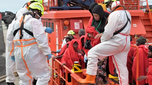 A bordo del cayuco viajaban 39 hombres y ocho mujeres procedentes, en su mayoría, de Senegal, Gambia, Guinea-Bisáu y Marruecos, localizados por Salvamento Marítimo cuando aún estaban a 80 kilómetros de tierra.
