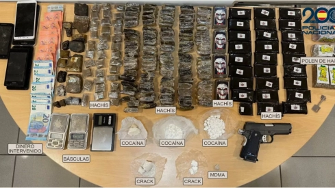 Tras verificar que los sospechosos vendían drogas en la vivienda, se obtuvo la autorización judicial para llevar a cabo un registro en el que se incautaron 4 kilos de hachís, 1,3 kilos de polen de hachís, 85 gramos de cocaína, 39 gramos de crack y 0,7 gramos de MDMA (cristal).