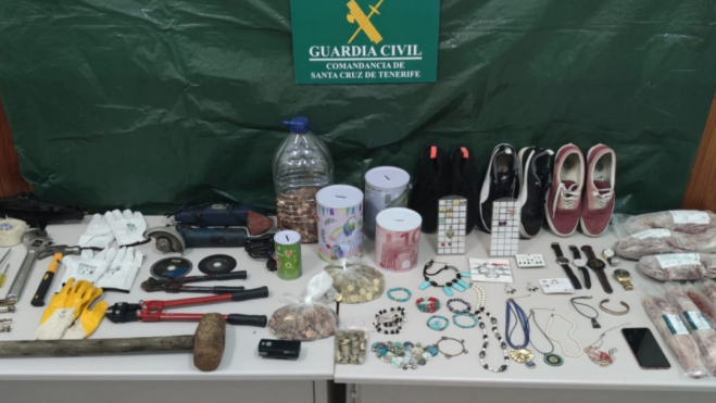 La Guardia Civil de Santa Cruz de la Palma ha detenido a un varón de 34 años de edad como presunto autor de 26 delitos de robo con fuerza en establecimientos comerciales, 7 de ellos en grado de tentativa donde solo se valoraron daños en los sistemas de cierre de los establecimientos, según informa la Guardia Civil en un comunicado.La totalidad de los establecimientos donde se produjeron los robos se encuentran en la zona este de la isla de La Palma, empleando en todos ellos el mismo modus operandi, consistente en la entrada mediante rotura de los elementos de cierre y limitándose, en la mayoría de casos, a la sustracción de dinero en efectivo de la caja o máquinas recreativas del local.Entre los robos consumados se encuentran diversos establecimientos de distinta índole como restaurantes, ferreterías y otro tipo de comercios de los términos municipales de Breña Baja, Breña Alta, Santa Cruz de la Palma, Puntallana y San Andrés y Sauces, donde además de dinero en efectivo, robó alimentos perecederos de uno de los restaurantes, indica la nota.Según informan, la investigación comenzó el pasado mes de septiembre de 2020 y tras diversos operativos se permitió obtener la identidad del principal sospechoso y se obtuvieron los indicios suficientes de su participación en estos delitos y la localización de su domicilio donde, tras practicar el registro del mismo, se han recuperado diversos elementos de prueba, dinero en efectivo que pudiera provenir de las cajas y máquinas recreativas de los establecimientos, así como bienes sustraídos, entre los que se encuentran una linterna de ciclismo de alta capacidad lumínica, relojes, joyas y alimentos perecederos.Tras ser puesto a disposición del Juzgado de Guardia de Santa Cruz de la Palma la autoridad judicial decretó el ingreso en prisión provisional sin fianza del detenido.El Puesto Principal de Santa Cruz de la Palma, realizará durante esta semana de mayo, en horario de mañana, una exposición de los bienes recuperados con la finalidad de que puedan ser reconocidos y devueltos a sus propietarios tras aportar la justificación pertinente, indica la nota.