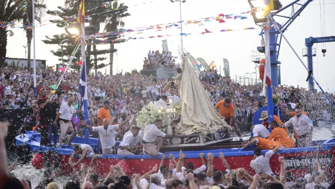 A las 20.35 horas, el muelle pesquero del Puerto de la Cruz se llenó de devotos que coreaban: "No pasa nada, la Virgen está embarcada". Así se inició la travesía de la Virgen del Carmen y San Telmo, coincidiendo con la festividad de Nuestra Señora del Carmen.