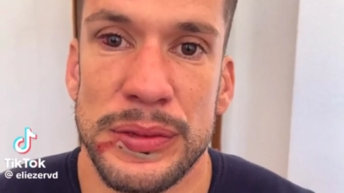 “Fuera de la discoteca me pegaron una paliza, tengo el labio partido y el ojo estallado”, relató el joven que también anuncia en el vídeo que ya ha denunciado los hechos ante la Policía Nacional.